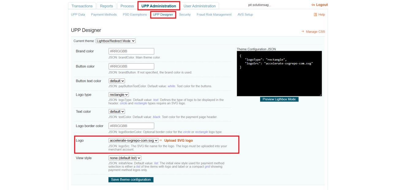 • Merchant ID: Found at the top-right corner after logging in, or under UPP Administration → UPP Data.