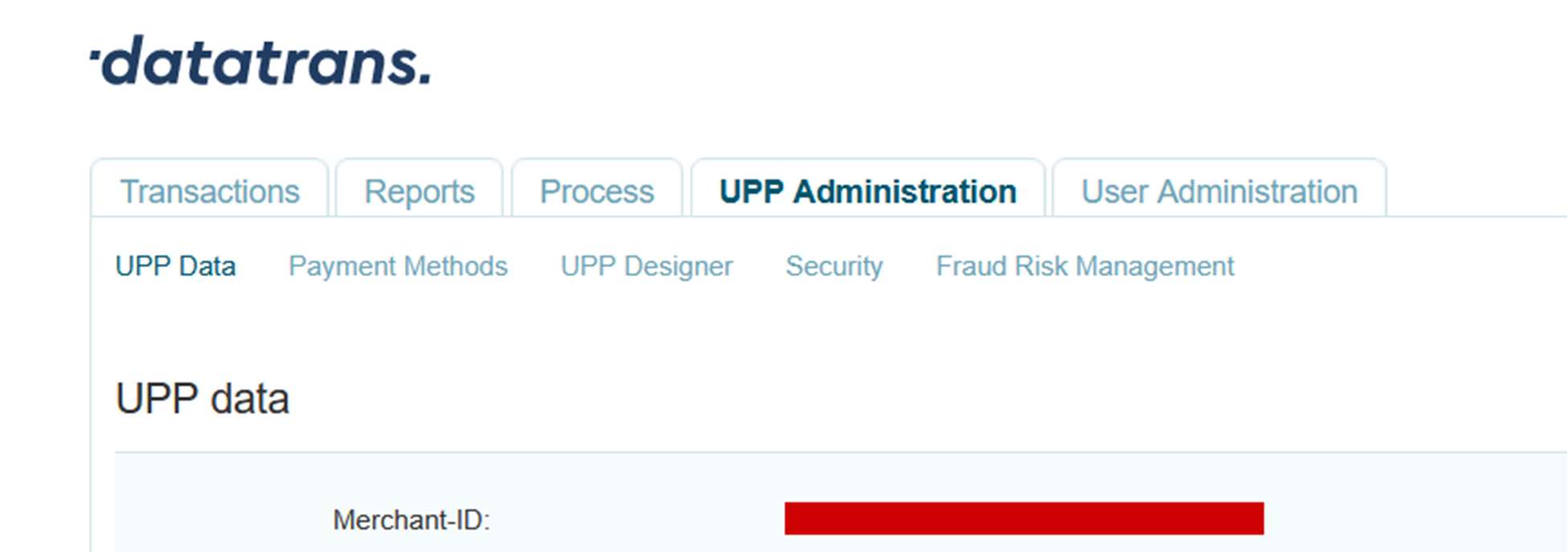 Screenshot 1: Datatrans Webadmin Tool - Merchant ID