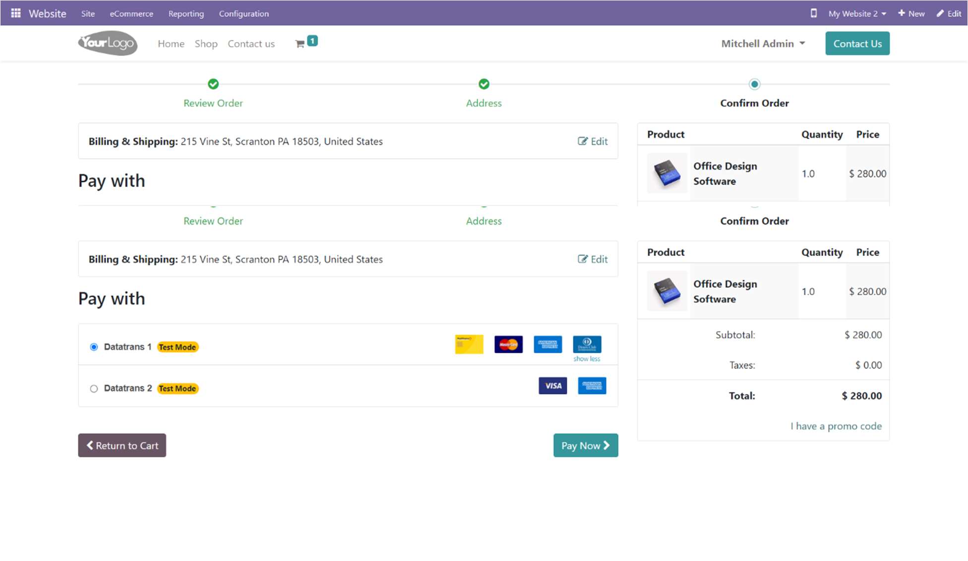 Screenshot 6: Ecommerce Pay Now Page