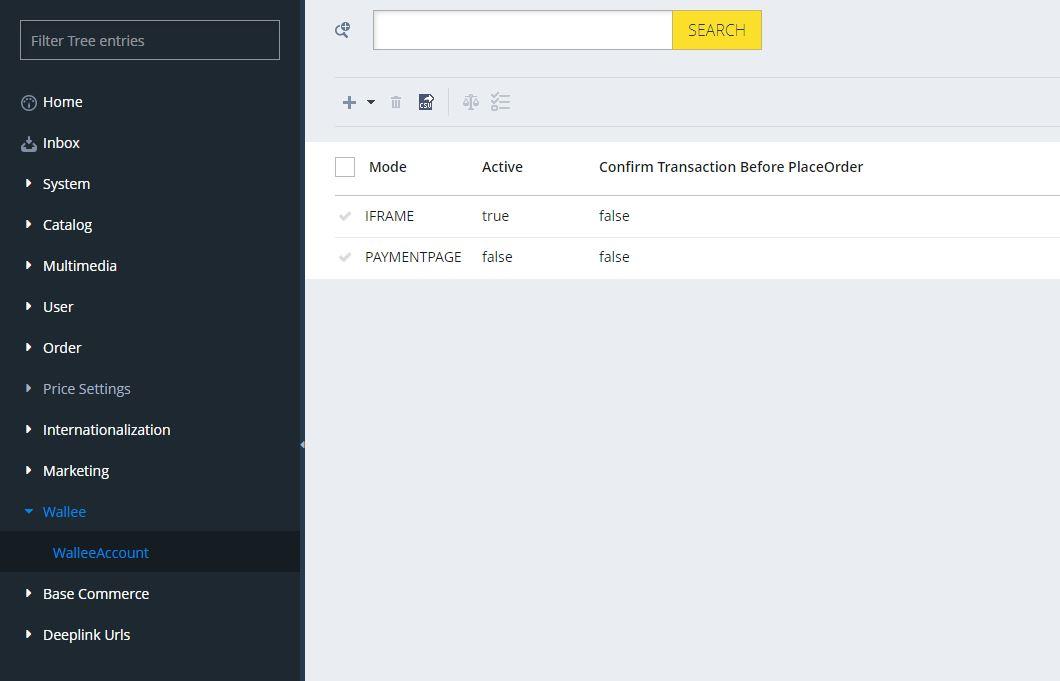 Installing the Wallee Payment Solution for SAP Commerce Cloud extension will provide you with user configured payment methods in wallee which can be viewed in Payment Methods Configuration in user’s space in wallee. Here new standard payment modes can be added as required.