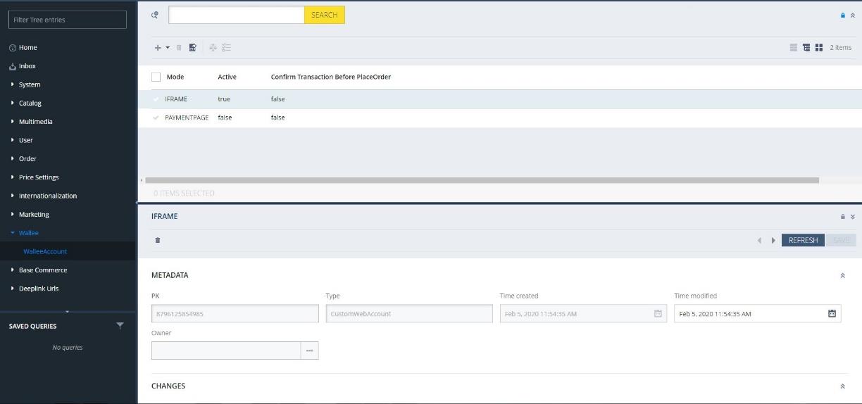 In SAP Commerce Cloud backoffice, See the wallee Account section, which shows the accounts/mode. Here the user can switch between the payment interfaces. We recommend to manually set only one account/mode as active at a time. If both accounts/mode are active, it will take PaymentPage as default account.