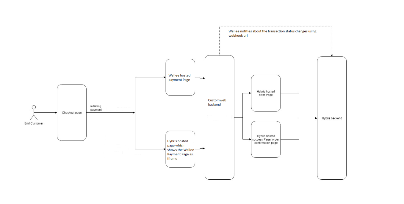 The following functionalities are covered as part of the “Wallee Payment Solution for SAP Commerce Cloud Plugin”. In order to create a payment in wallee, there is a choice between Payment Page Integration and iframe Integration.