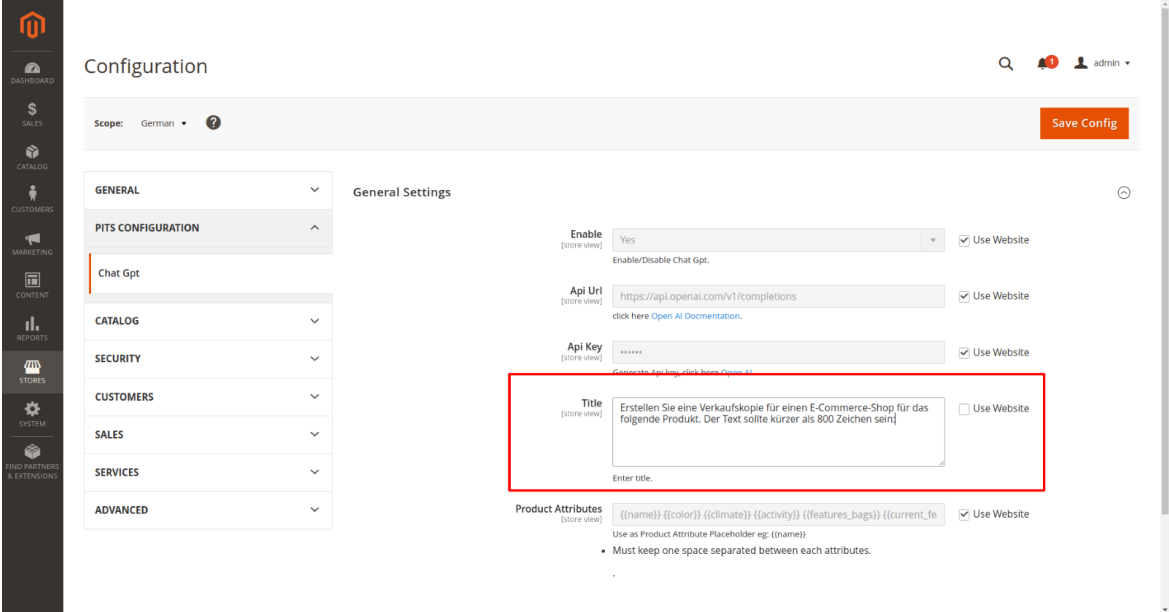 • Input for the ChatGPT will be automatically generated based on the attribute labels and values in the store scope.