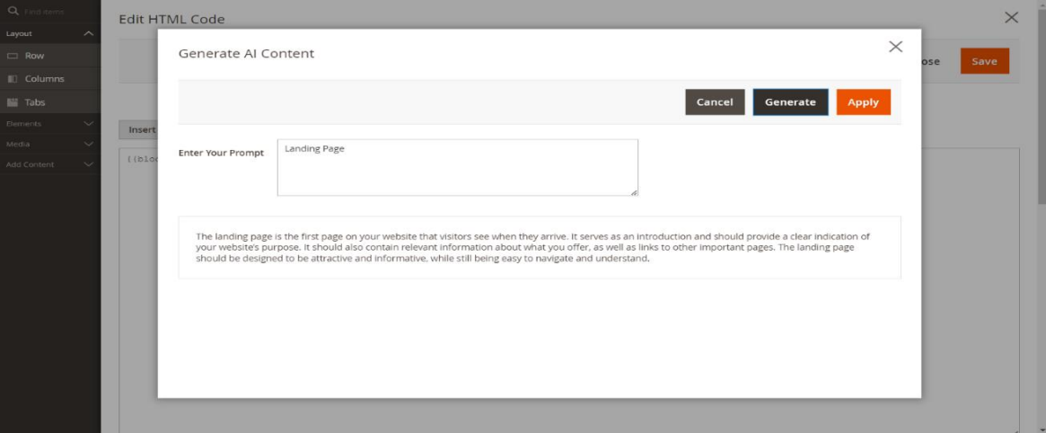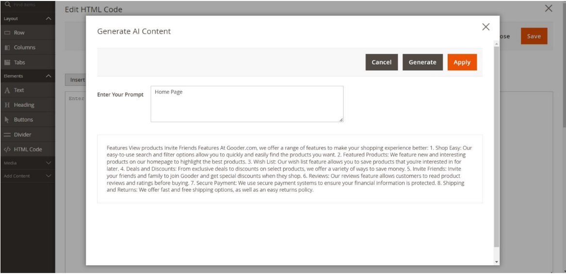 • The admin can add CMS page and Block content using ChatGPT AI.