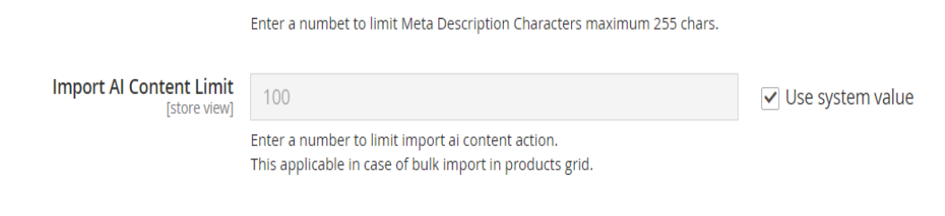 • Import AI Content Limit: Enter the limit for bulk update in the product grid.