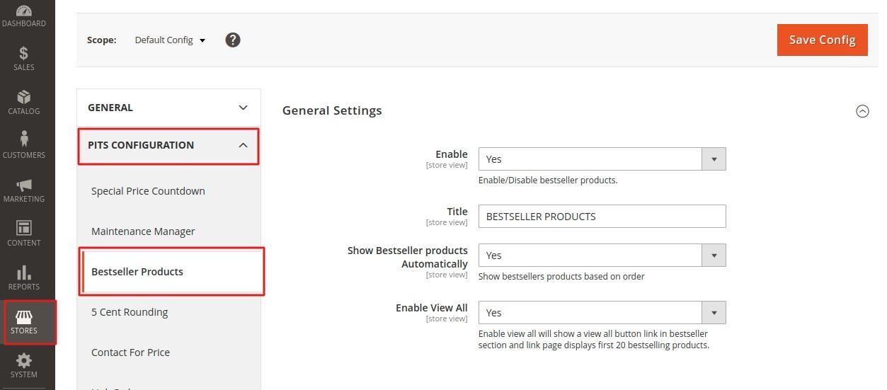 The Bestseller Products extension for Magento 2 has been developed by PIT solutions which display your store’s top selling products. This block can be added on the homepage and other pages. This functionality can be enabled or disabled for each store from admin. You only need to add a block of code in cms page.