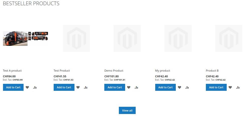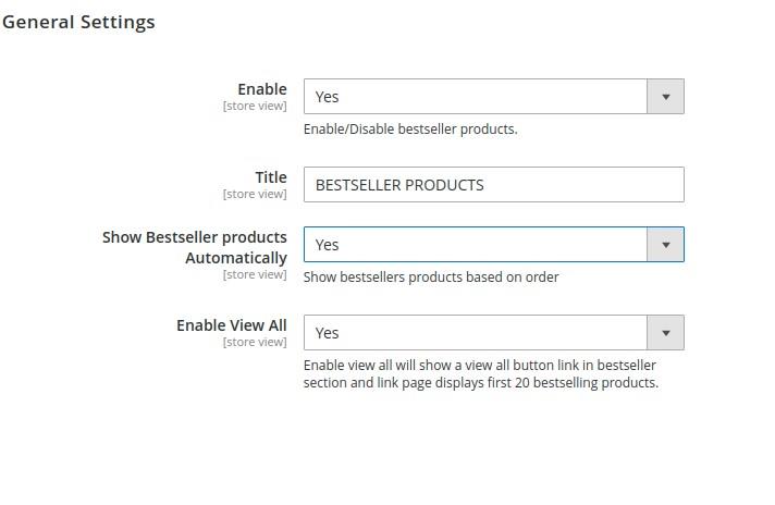 - Enable View All – Enabling this configuration will display a view all button in bestseller section. Click on the link and go to bestseller page shows first 20 bestselling products.