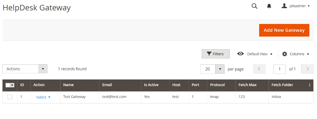 - Navigate to Admin > Help Desk > Gateways.