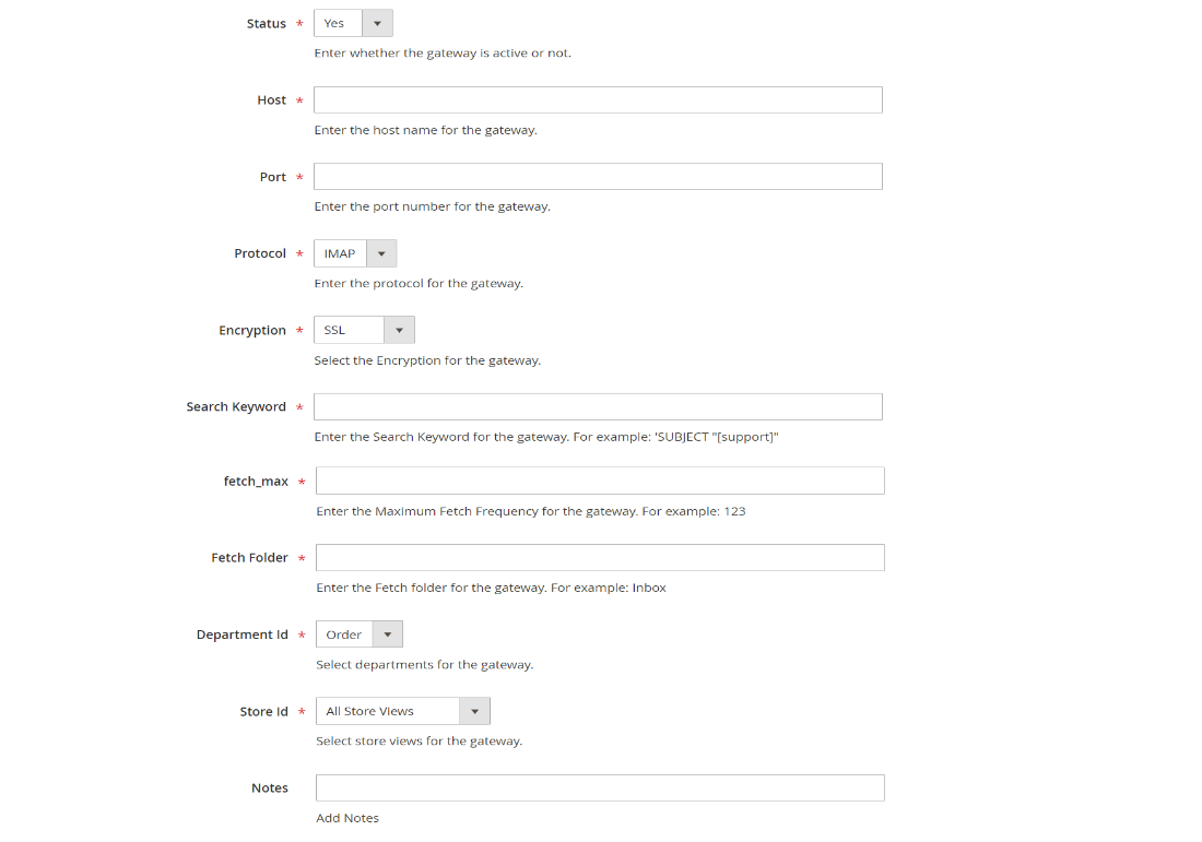- Protocol: Communication method used by the gateway (e.g., POP3, IMAP).