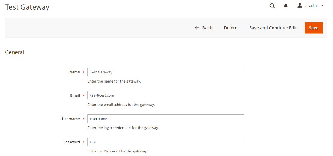 - Edit and update the gateway details in this view.