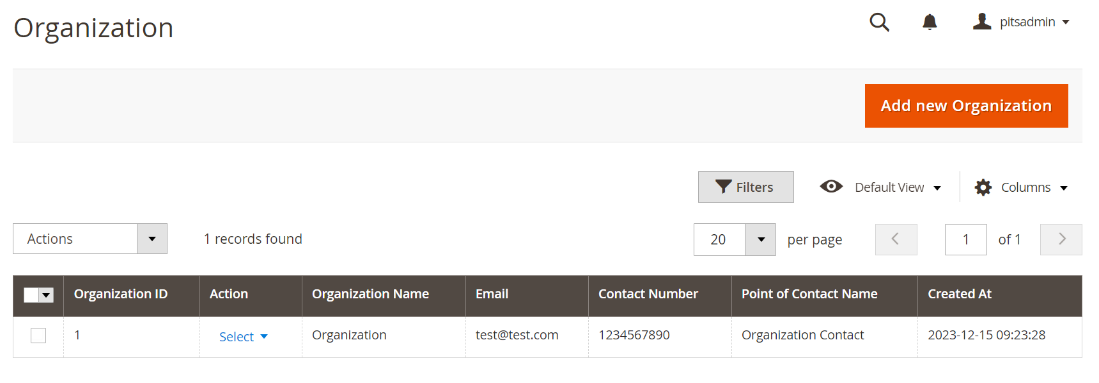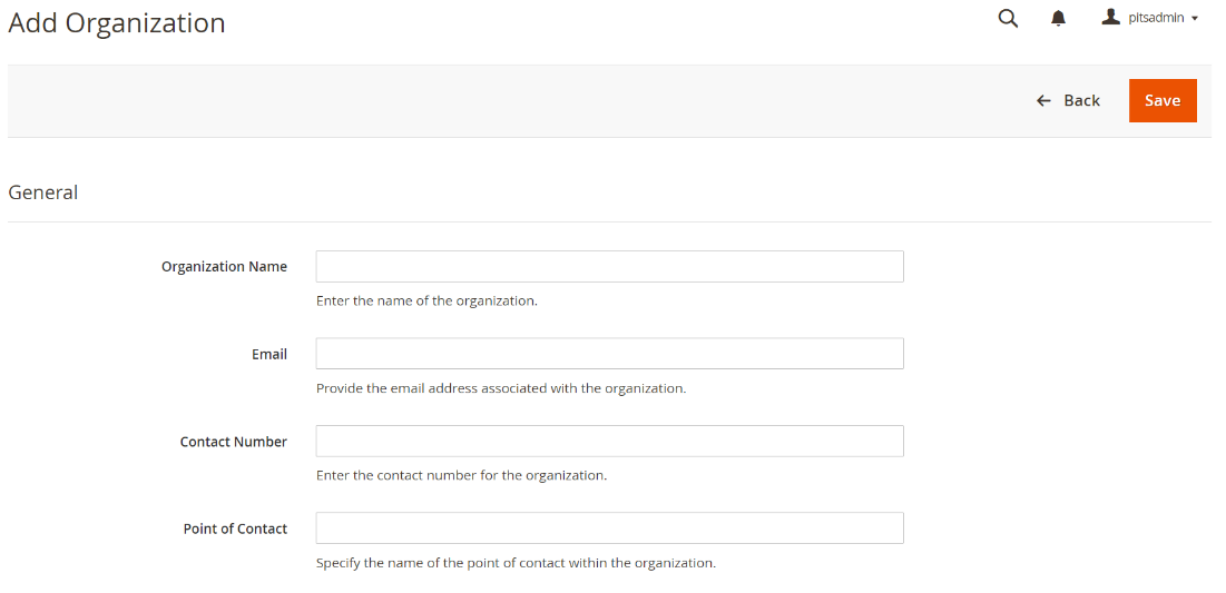 - Save the form to create the organization.