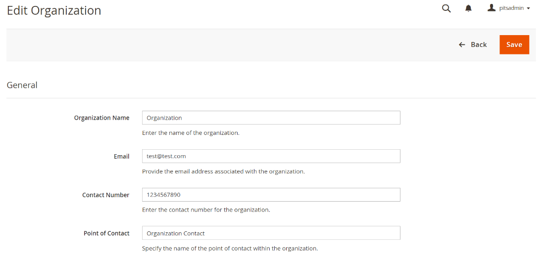 - Edit and update the organization details in this view.