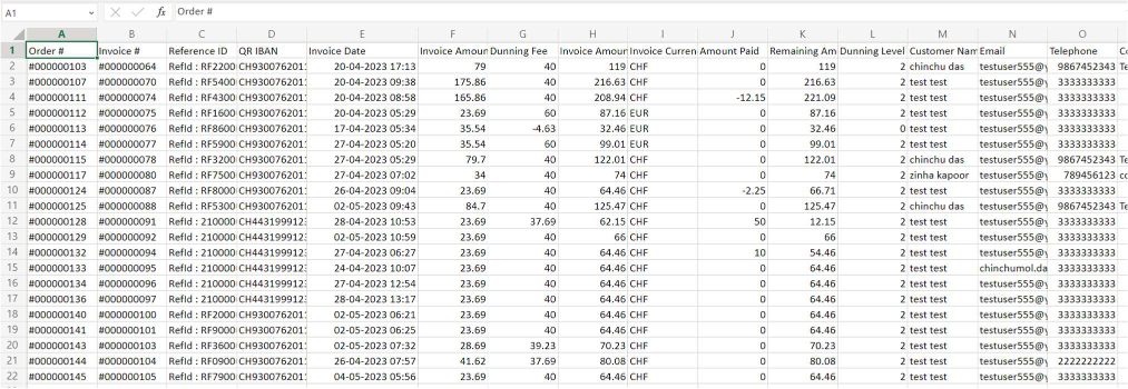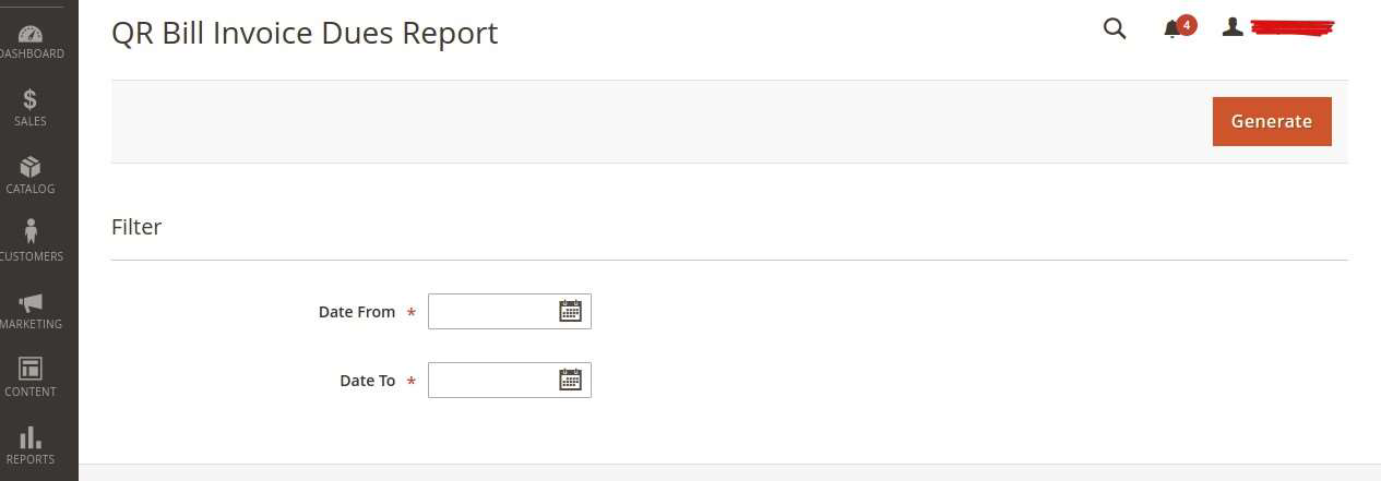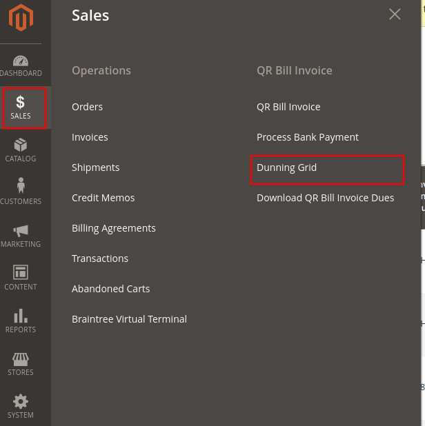 The report lists all the invoice details that has completed all the stages of dunning process but not paid yet. Go to Admin → Sales → QR Bill Invoice -> Download QR Bill Invoice Dues