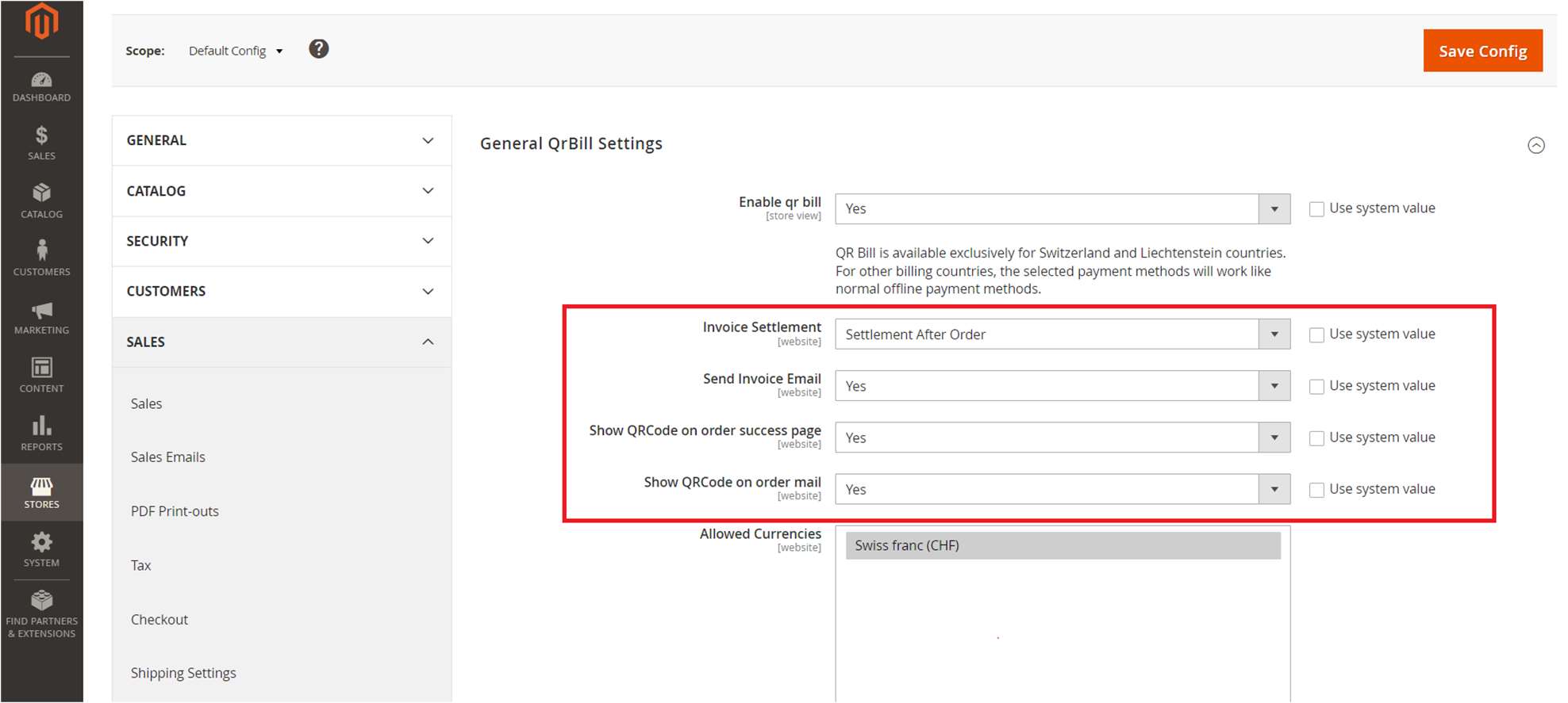 Allowed Currencies – This option to select all allowed currency for qrbill. Only CHF is allowed.