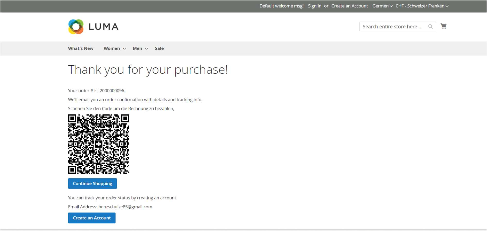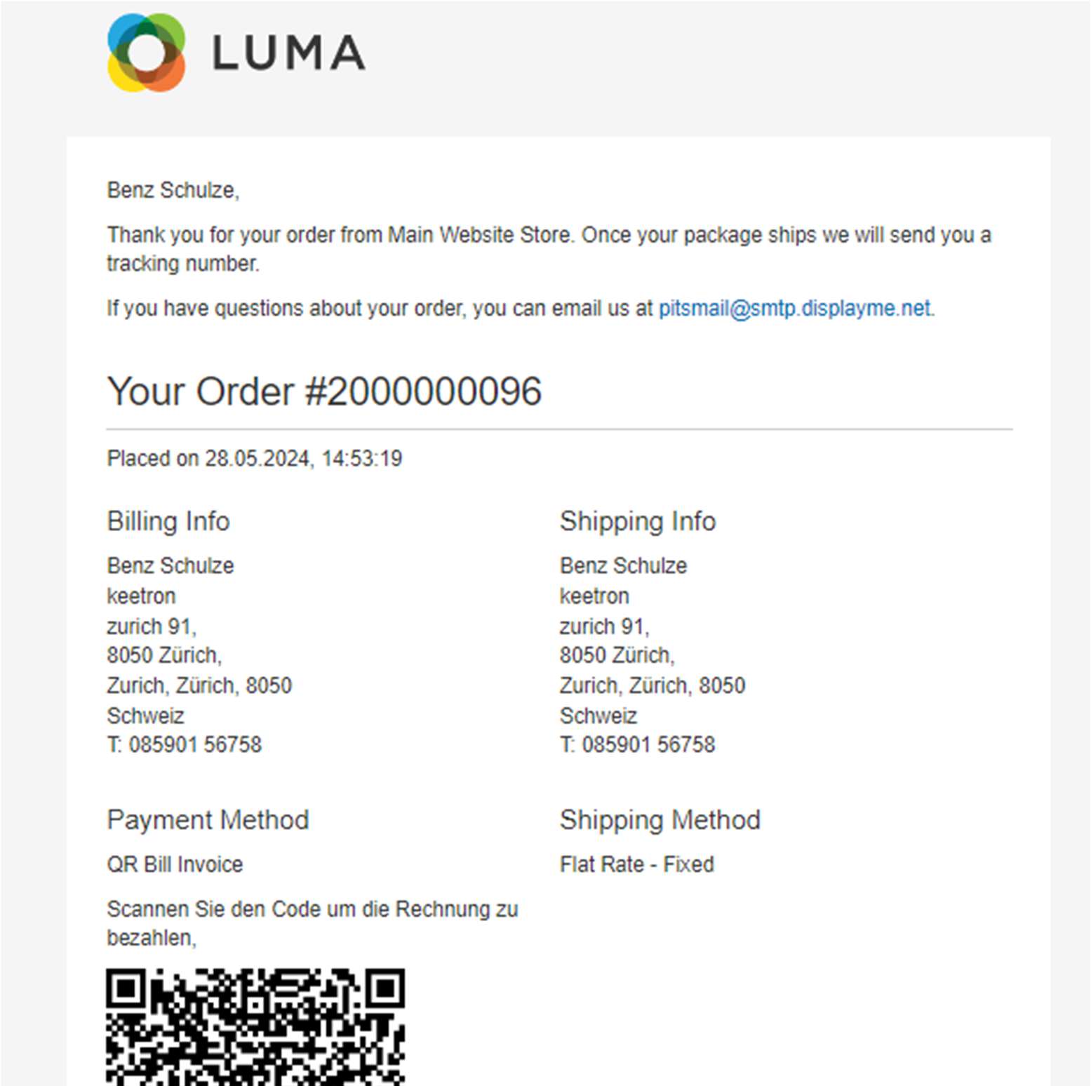 - Settlement after order – Invoice will be created automatically after placing order and QR invoice slip will be sent to customer along with invoice email Refer Figure 8 for sample QR bill