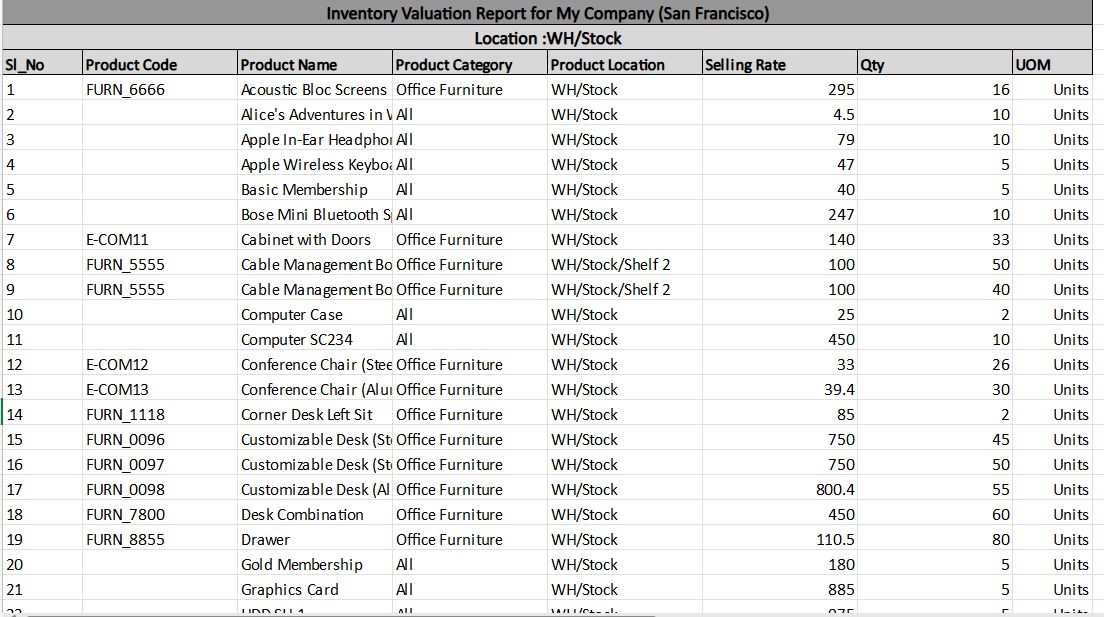 Screenshot 4: Sample Exported Excel – Inventory Valuation Report