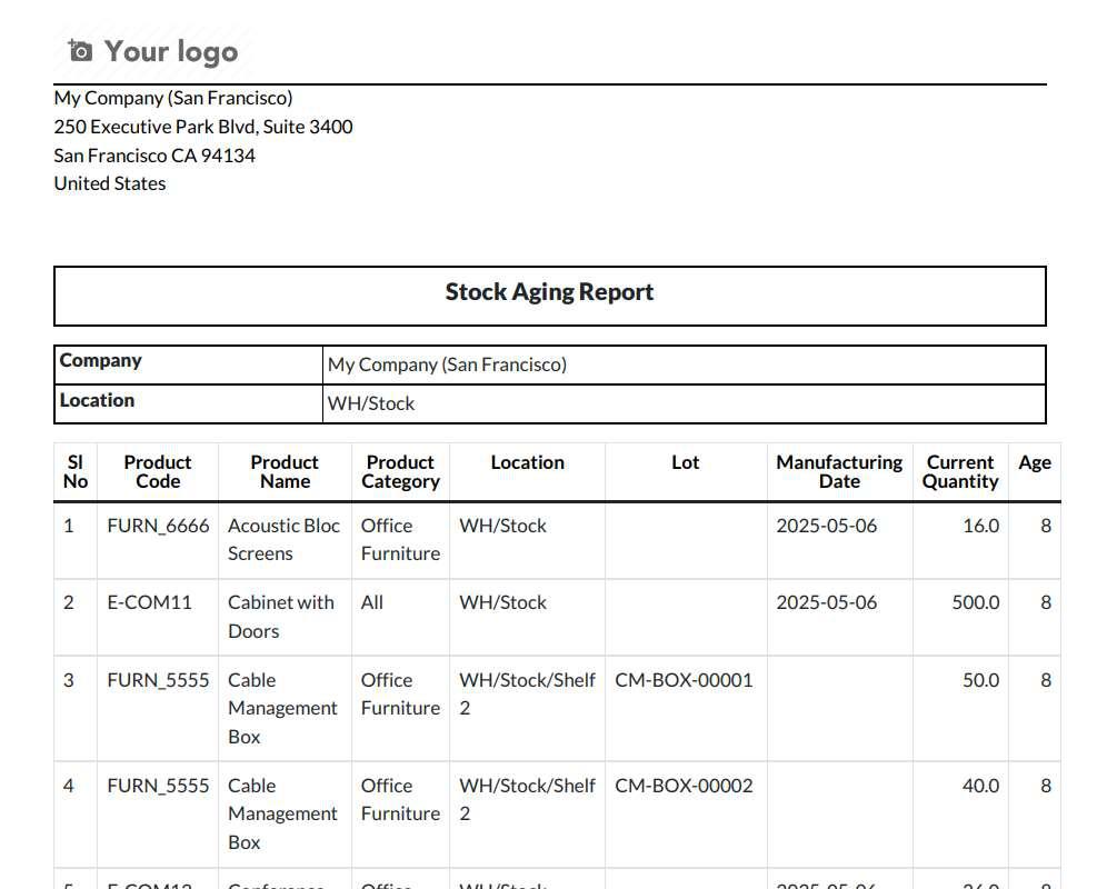 Screenshot 15: Sample Exported PDF – Stock Aging Report