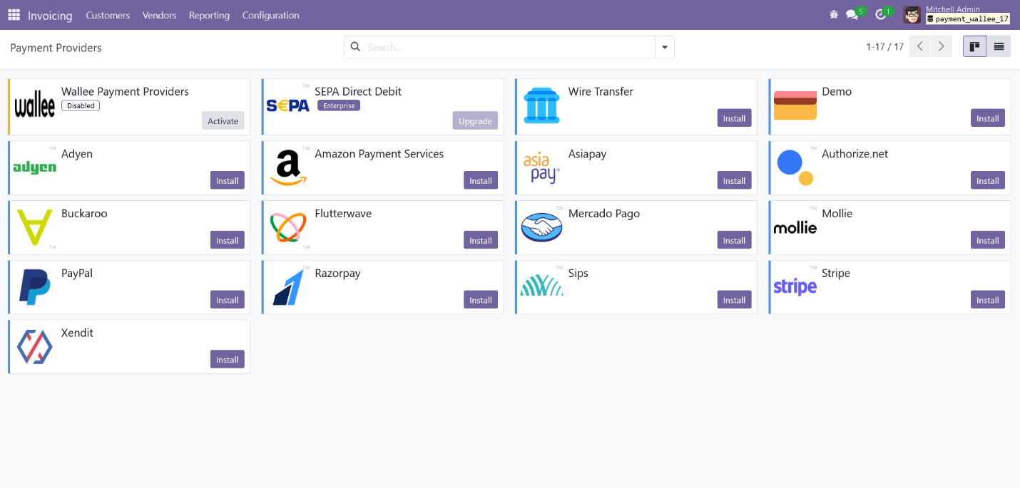 - Invoicing > Configuration > Payment Providers