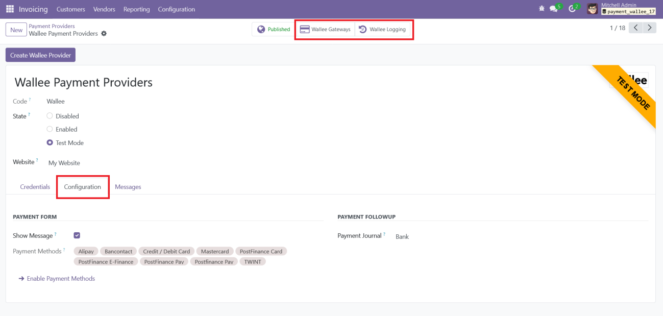 3.1. Odoo Backend Configuration for Wallee