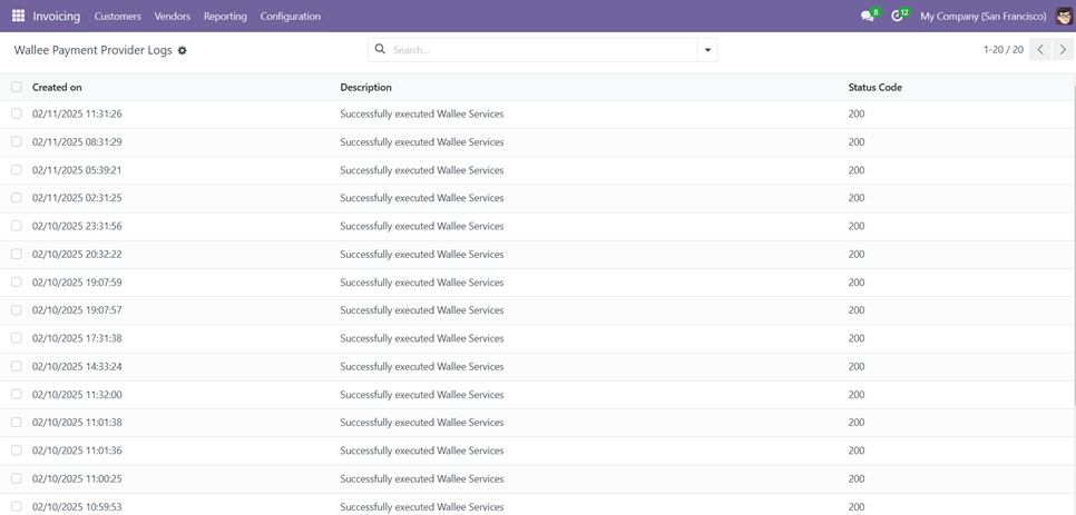 Screenshot 5: Wallee Payment Provider Logs