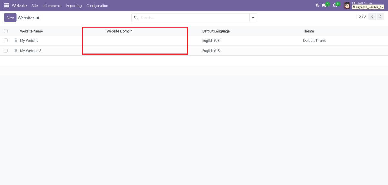 To enable multi-website functionality, you must configure the domain names for each website.