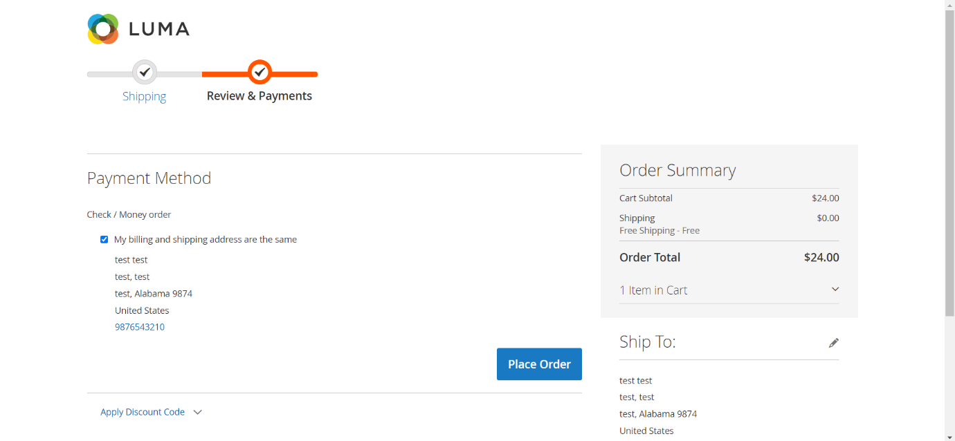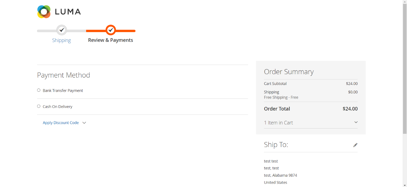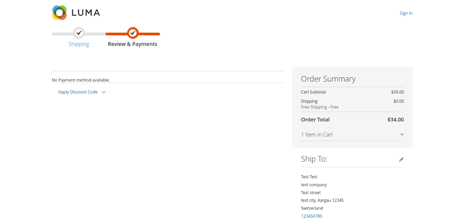Navigate to Stores > PITS Configuration > Payment Methods By Customer Group. If “Allow/Deny” drop-down is selected with “Deny”, then that particular payment method will not be displayed in checkout for the selected customer groups. None of the payment methods are denied here since no customer group selected in the above configuration.