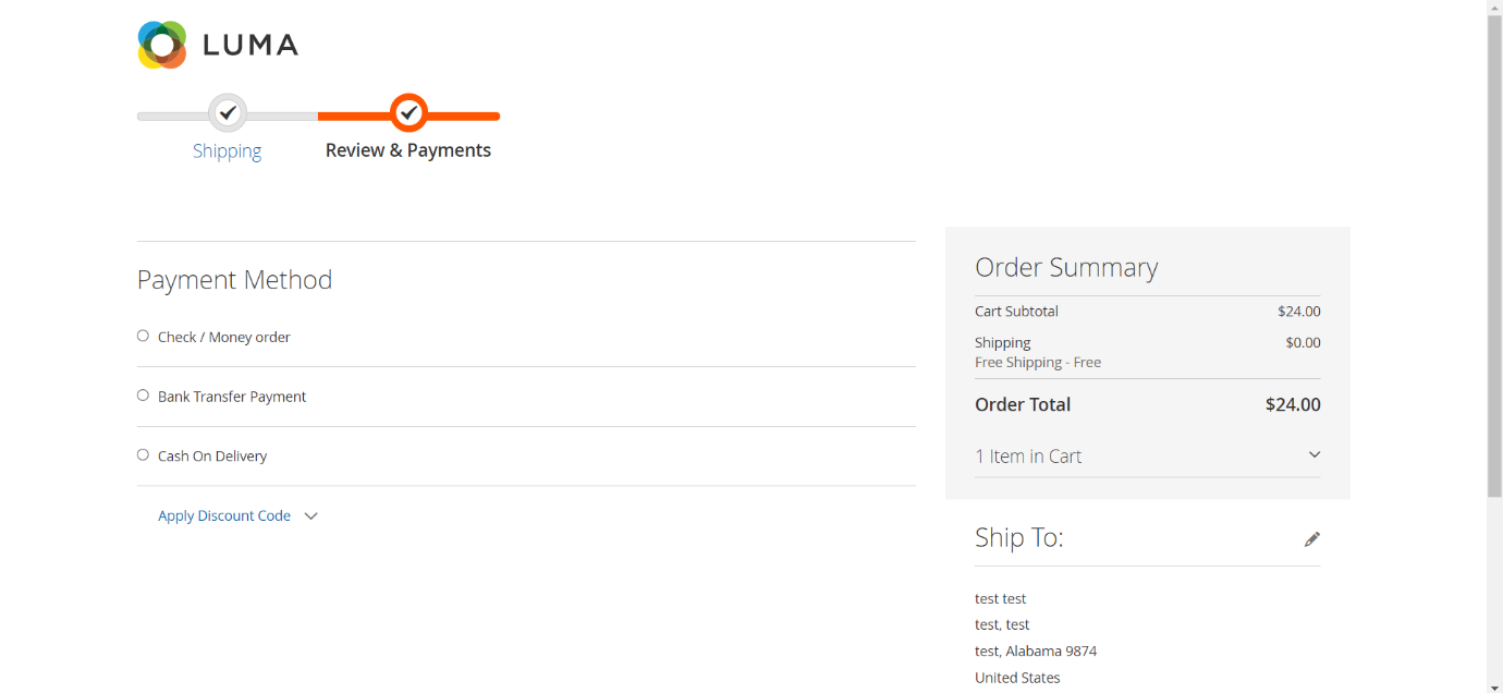 In checkout page, the denied payment method “Check / Money order” will NOT be displayed for General customer group.