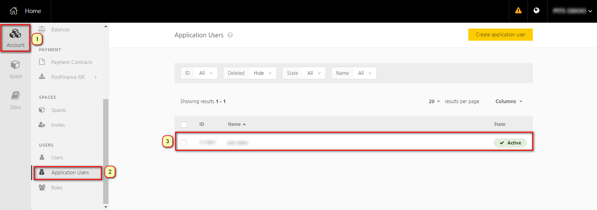 - Navigate to Account -> Application Users -> Open User -> Copy the ID.