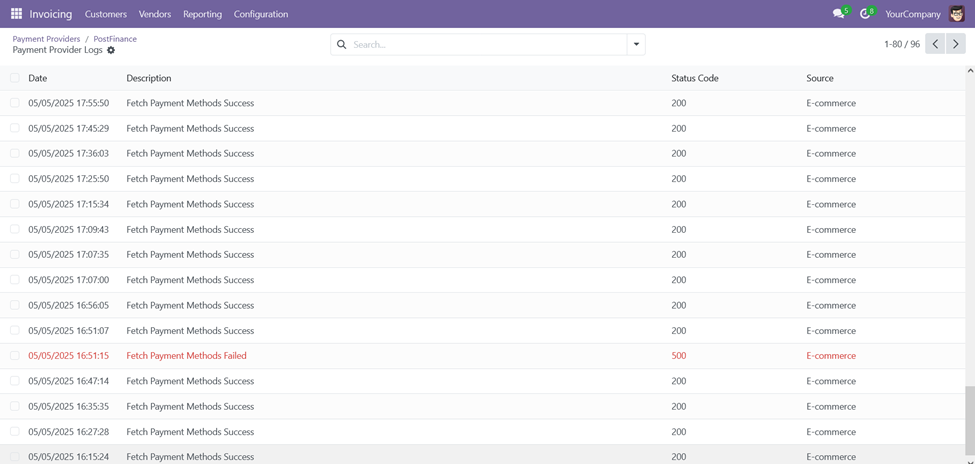 - Go to Invoicing -> Payment Providers -> Open PostFinance Payment Provider.