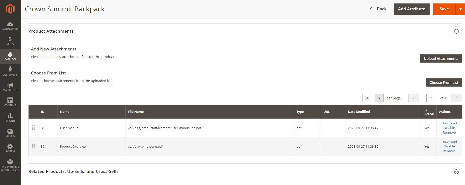 Diese Version, die ebenfalls unterstützt wird, geht noch einen Schritt weiter, indem sie Administratoren die Möglichkeit gibt das Herunterladen von Anhängen zu kontrollieren und auf der Grundlage von Kundengruppen und Geschäften einzuschränken.Diese Funktion ermöglicht es Händlern, die Anhänge für verschiedene verschiedene Kundensegmente und Shop-Ansichten anzupassen.