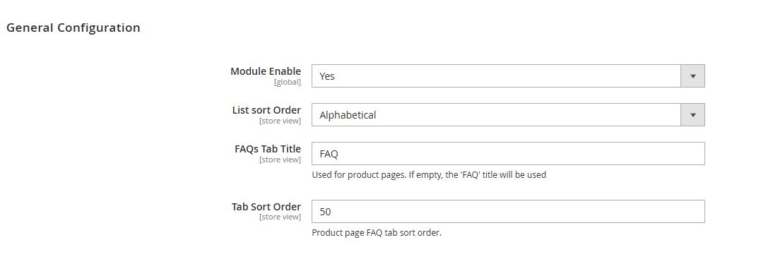 - List sort Order – Sort Order to display the FAQ list in product view page.