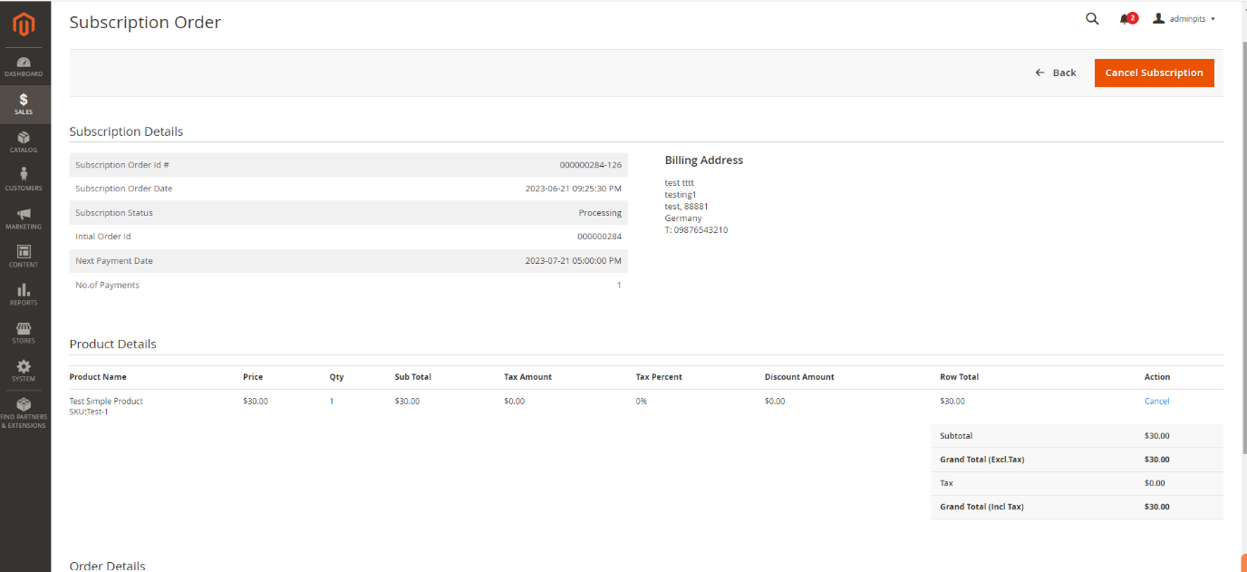 - Separate list for subscription orders & cancel rental subscriptions directly in the admin panel.