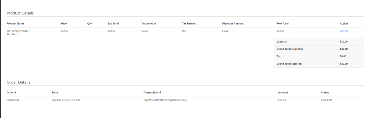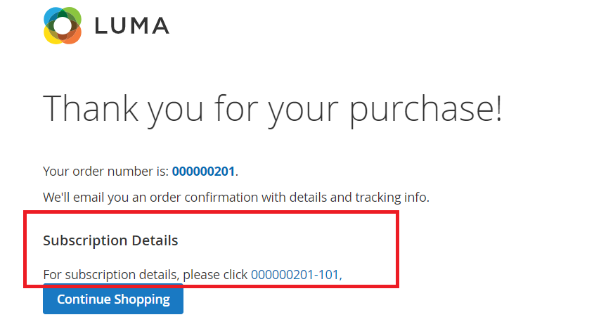 In the order success view page, you will find a link to the subscription order view page for the placed order.
