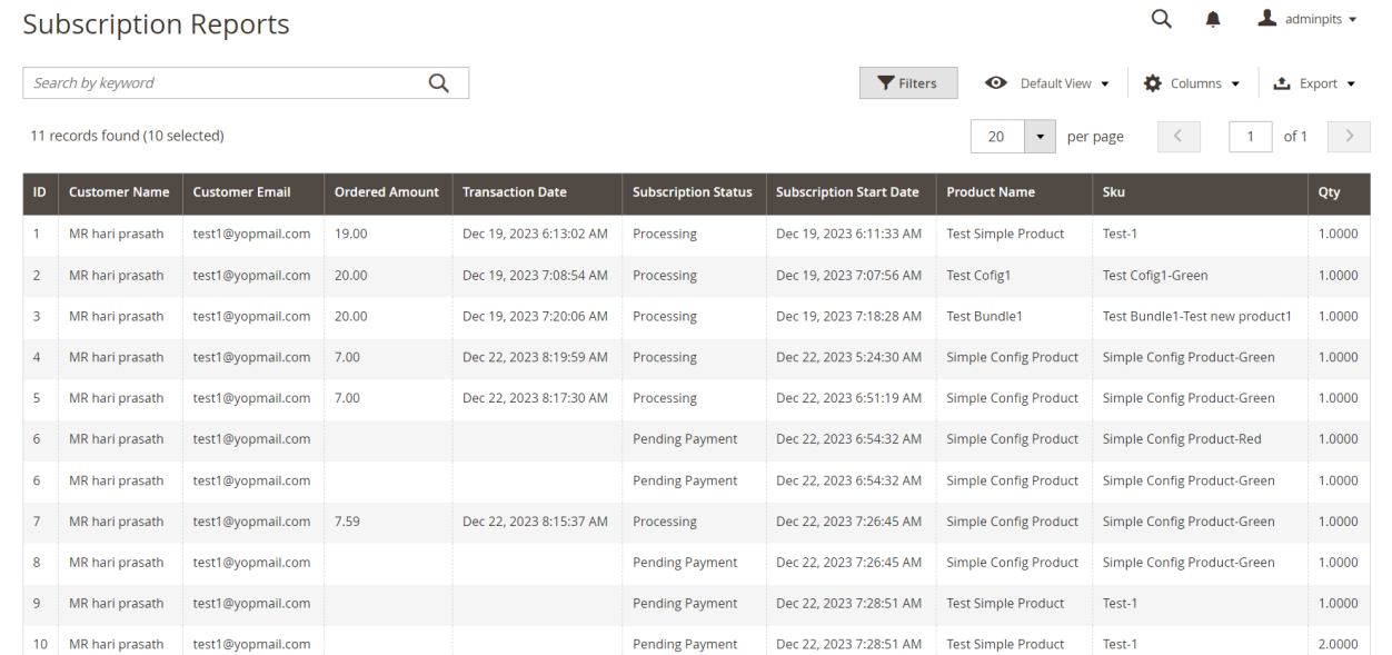 - Admin receives detailed reports for subscription activities, including insightful information about the status of payments and pending dues. These reports are conveniently delivered via email and can also be accessed directly from the admin panel, ensuring efficient monitoring and management.