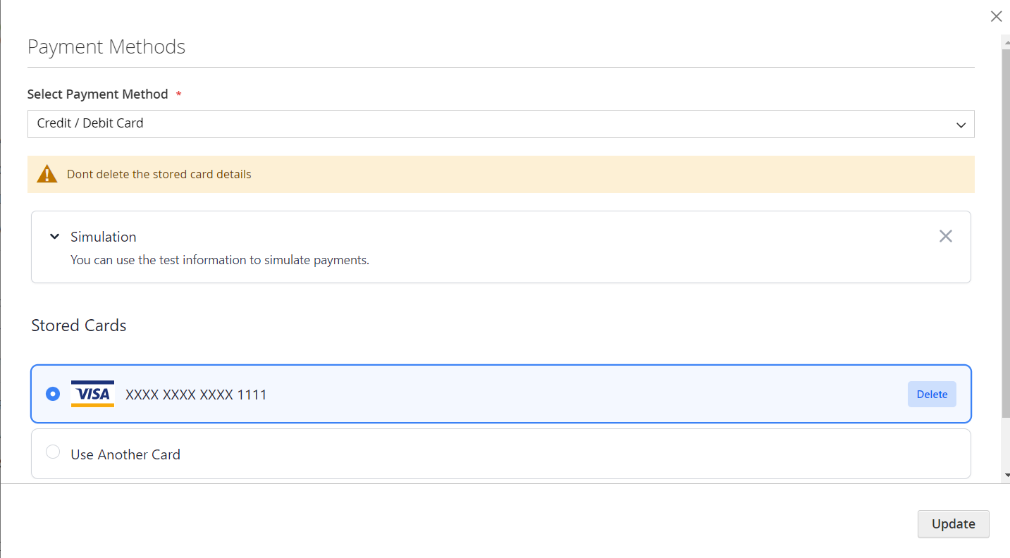 - wallee Card Warning Message: It will be displayed on the change payment method in customer dashboard.