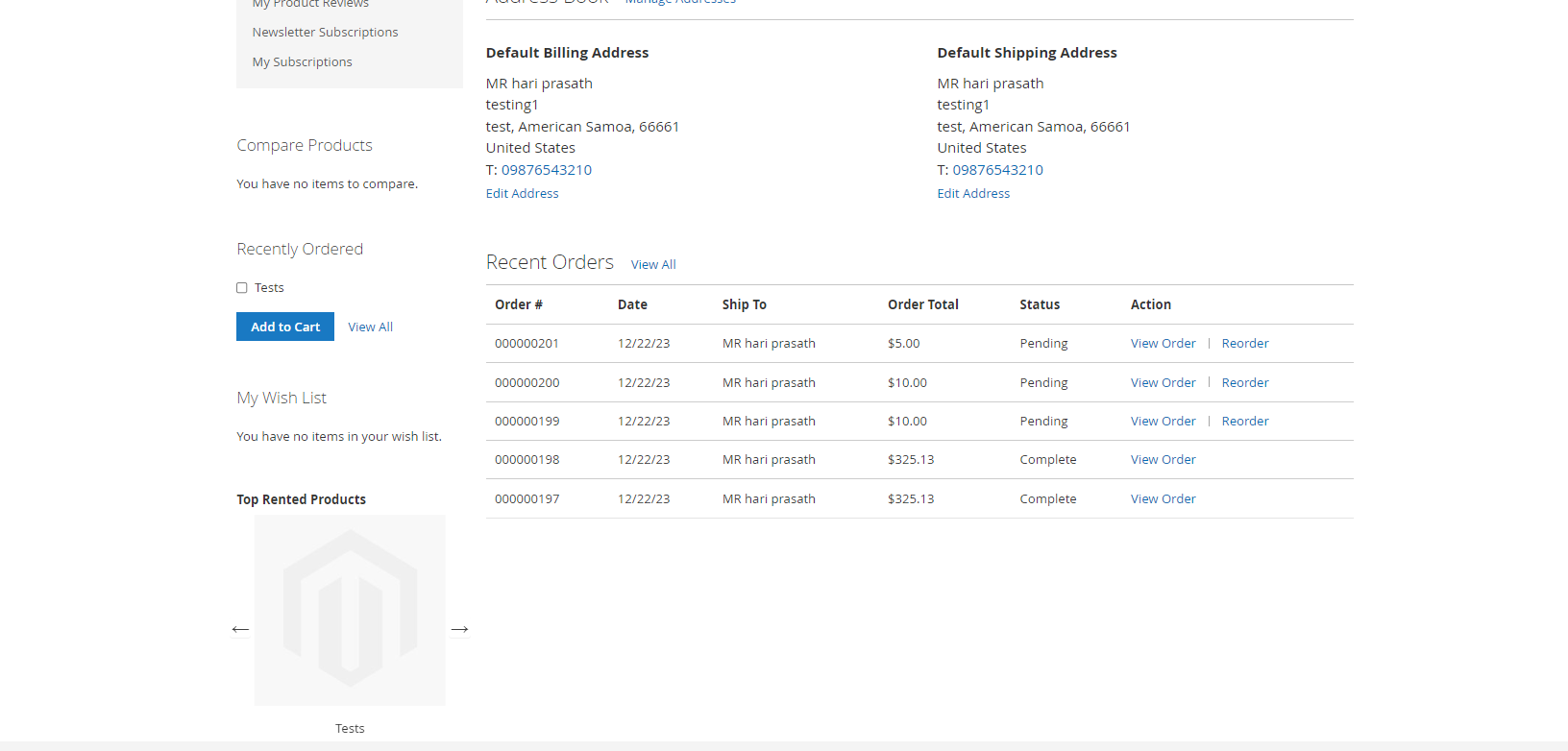 On the product view and customer "My Account" pages, the top sales rental products can be displayed in a sliding format. The number of products shown is determined by the limit set by the admin in the configuration.