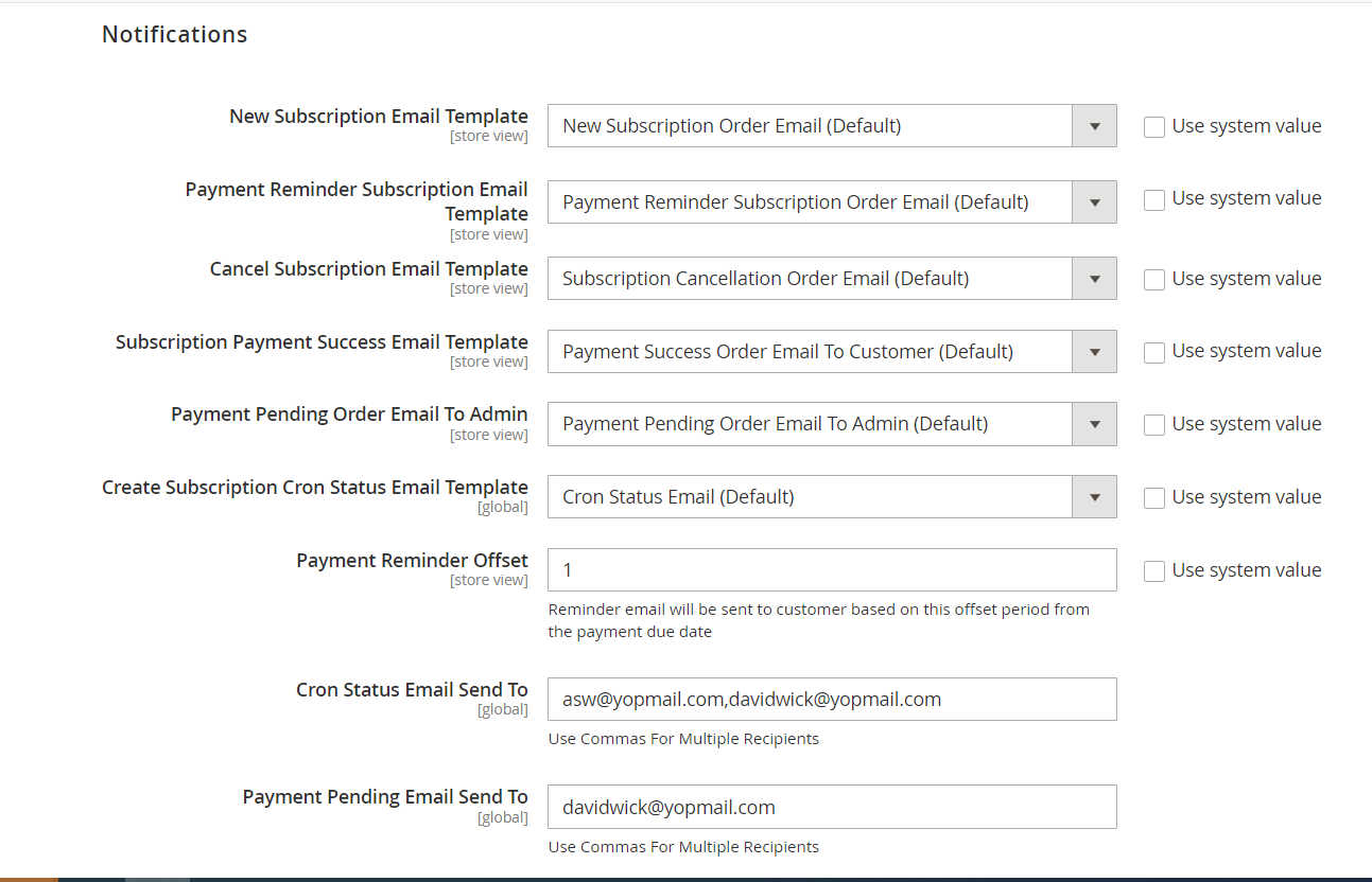 - Cron Status Email Send To: It will be used to send the child order creation for subscription orders.