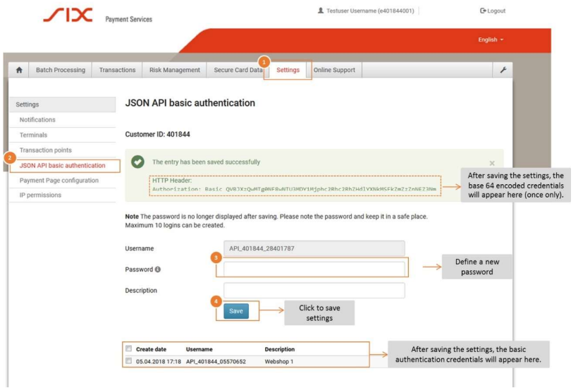 - API credentials like Terminal ID, Customer ID, JSON Username and JSON Password for the Saferpay Live- and/or Test environment