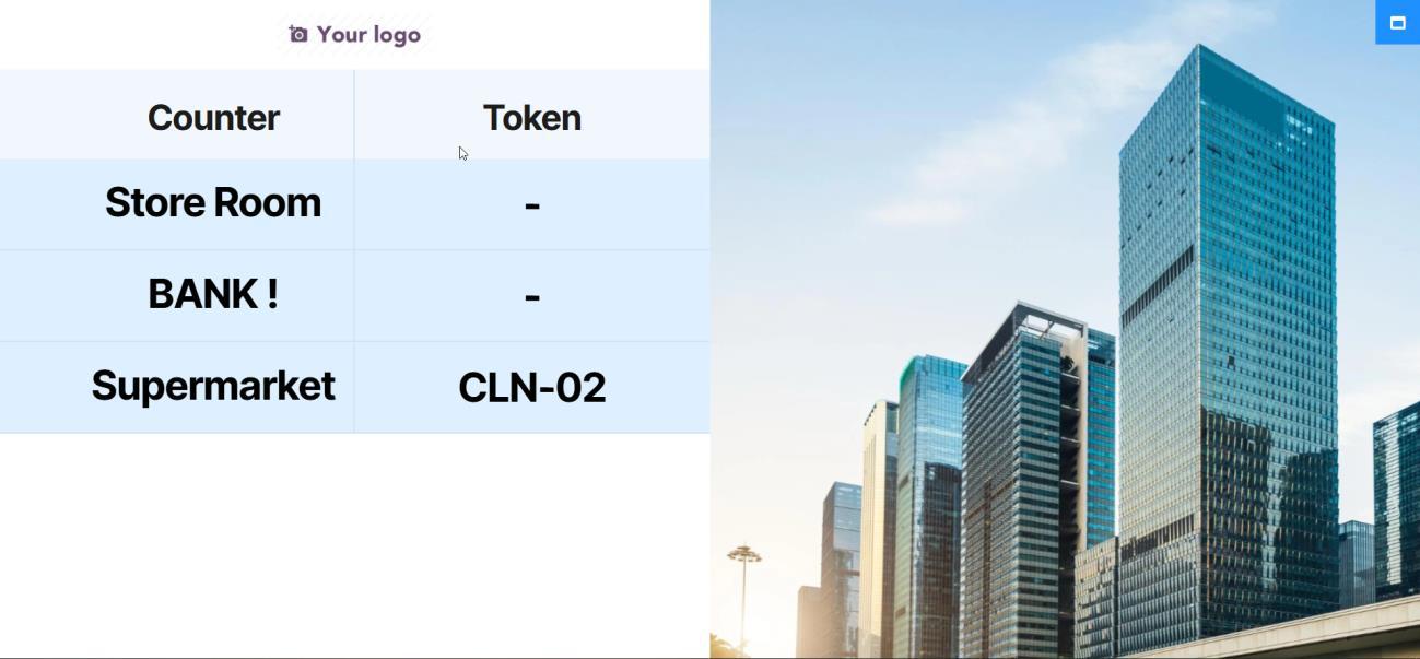 - Display: The current token at each counter is highlighted on the TV display, providing customers with real-time status updates for each counter and enhancing overall queue management visibility.