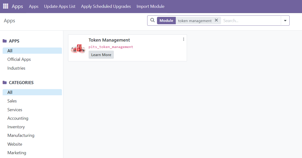 Step 1: Navigate to Apps menu and search for "Token Management" from the search bar.