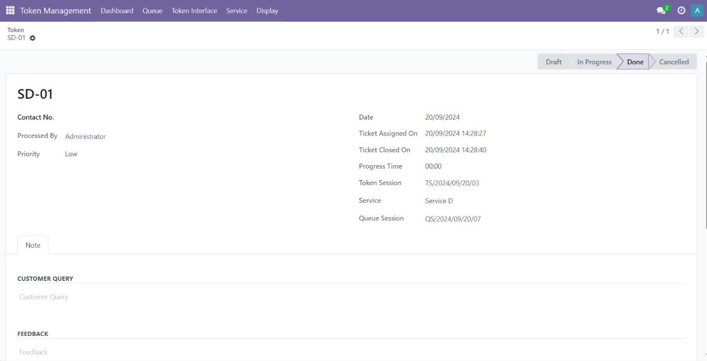 - All token-related information is accessible here. The 'Customer Query' and 'Feedback' columns allow Admins and token-responsible users to view and update customer queries and feedback as needed. These columns serve as reference points for managing and tracking interactions.