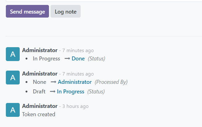 - Processed by – Responsible person handling the token (administrator or person set by the administrator).