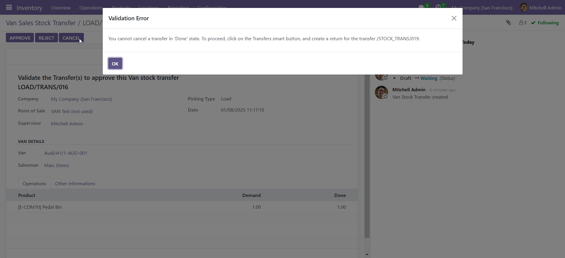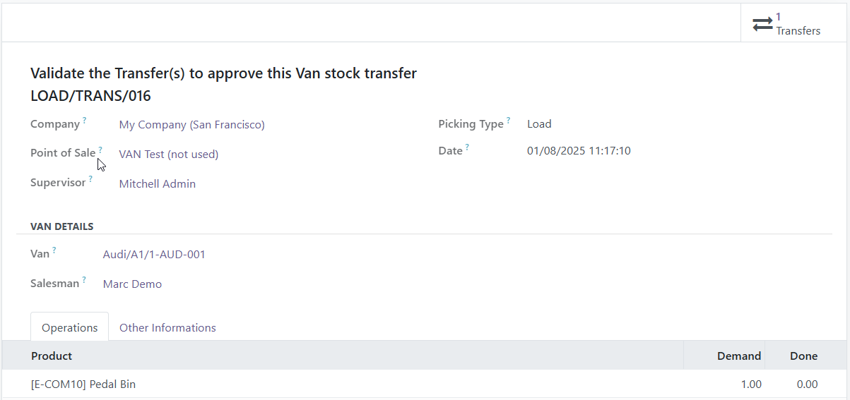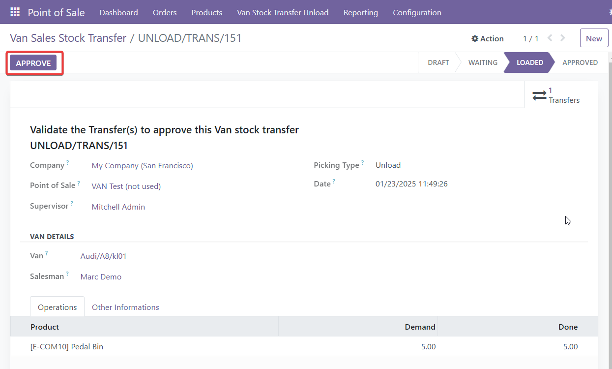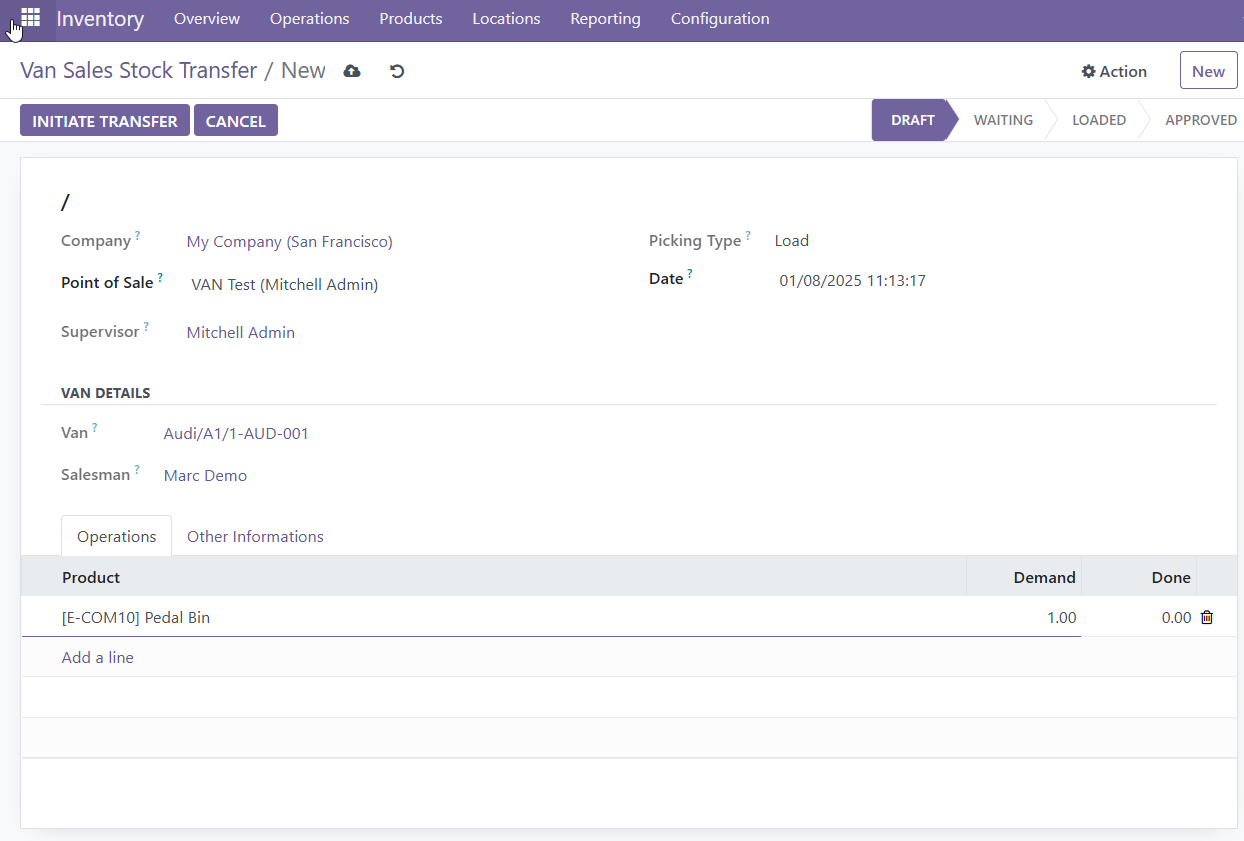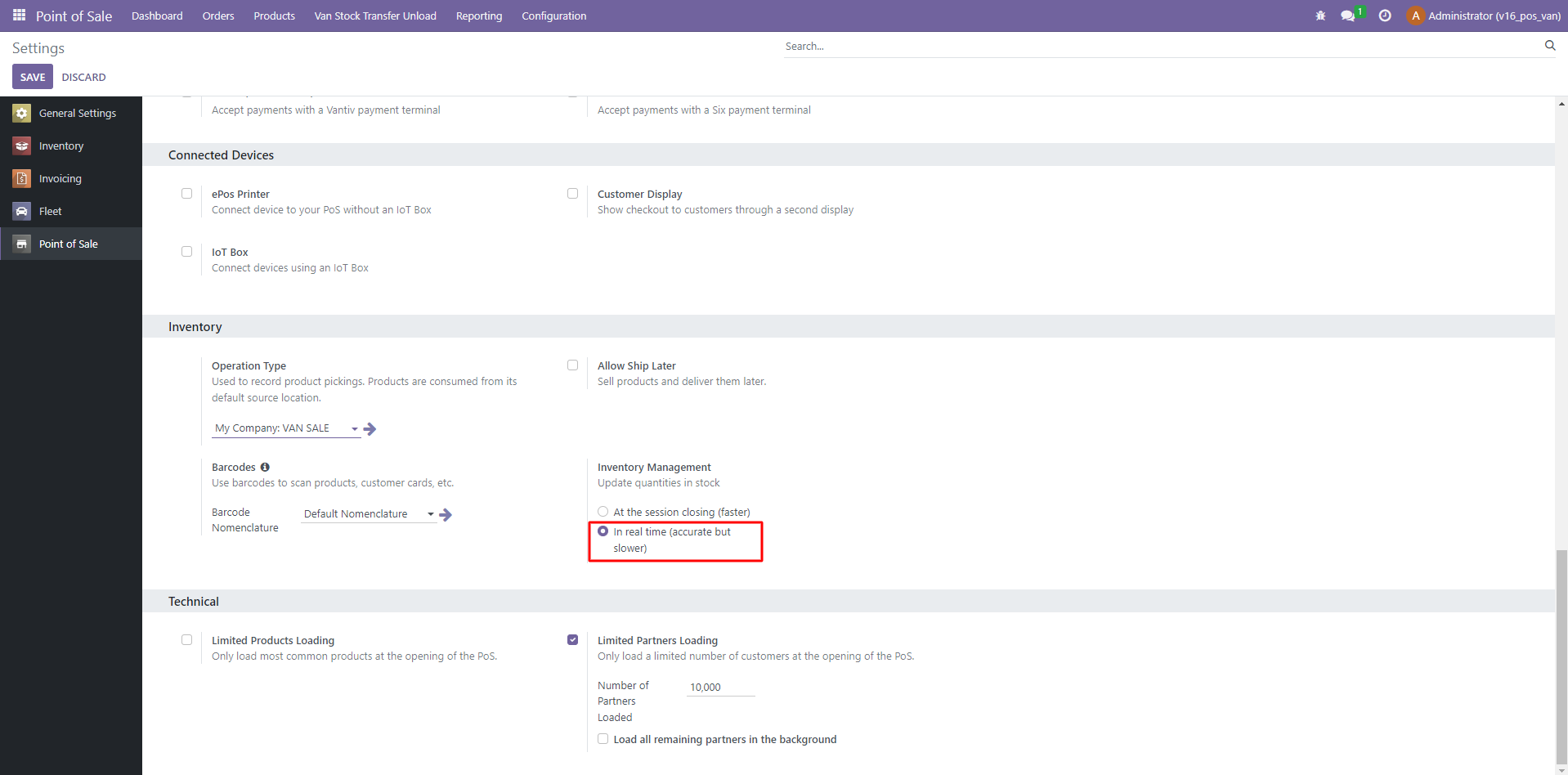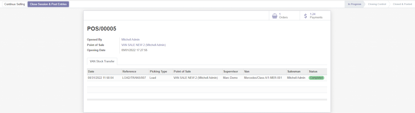 Van Sale ist eine Vertriebsmethode, bei der die Produkte vom Hersteller/Lager in den Lieferwagen geladen und an Kunden/Einzelhändler verkauft werden. Am Ende der Sitzung sollten die restlichen Produkte am ursprünglichen Standort abgeladen werden. Der Be- und Entladevorgang wird von einem Vorgesetzten bzw. einem Verkäufer verwaltet. Das Van-Sale-Modul wurde entwickelt, um diese Verwaltung zu erleichtern. Das Modul arbeitet zusätzlich zum Verkaufsstellenmodul. Die wichtigsten Funktionen dieses Moduls sind die Standortverwaltung, das Be- und Entladen mit Genehmigungsverfahren, die Verwaltung von Verkaufssitzungen und so weiter.