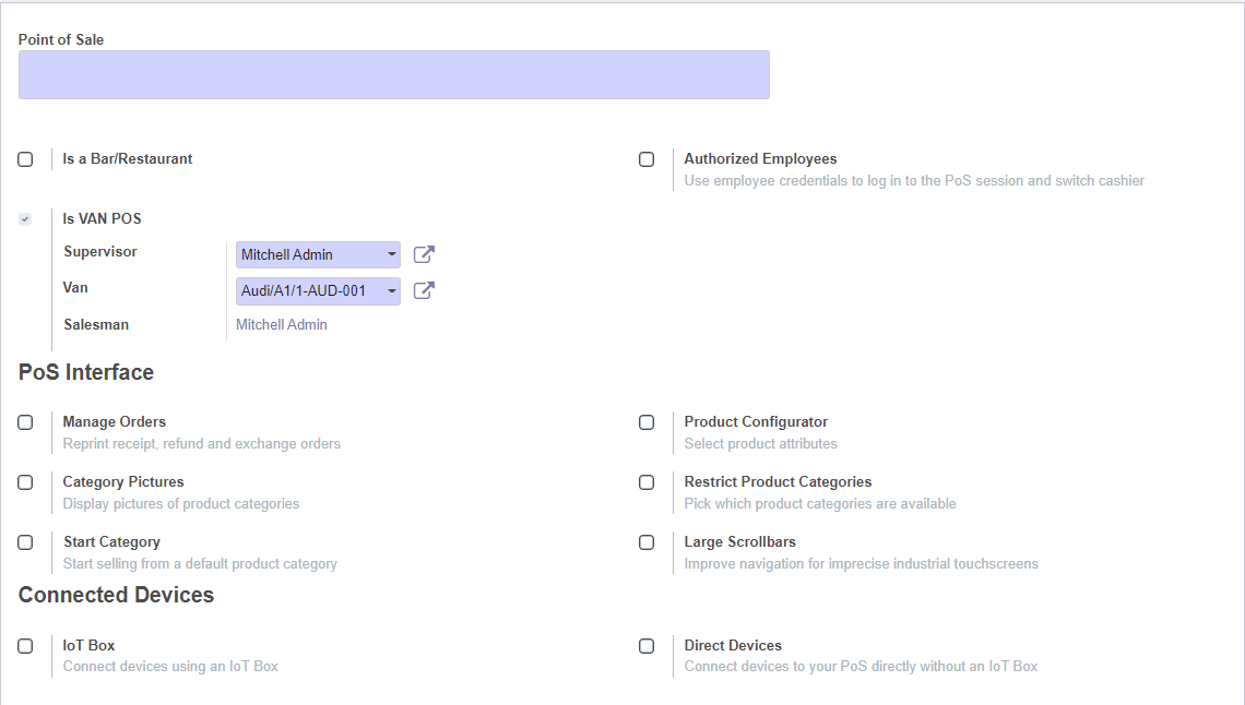 - - Einfache Konfiguration einer Verkaufsstelle als Van-Verkaufsstelle.