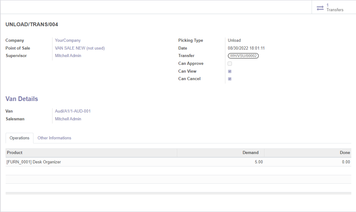 Van Sale ist eine Vertriebsmethode, bei der die Produkte vom Hersteller/Lager in den Lieferwagen geladen und an Kunden/Einzelhändler verkauft werden. Am Ende der Sitzung sollten die restlichen Produkte am ursprünglichen Standort abgeladen werden. Der Be- und Entladevorgang wird von einem Vorgesetzten bzw. einem Verkäufer verwaltet. Das Van-Sale-Modul wurde entwickelt, um diese Verwaltung zu erleichtern. Das Modul arbeitet zusätzlich zum Verkaufsstellenmodul. Die wichtigsten Funktionen dieses Moduls sind die Standortverwaltung, das Be- und Entladen mit Genehmigungsverfahren, die Verwaltung von Verkaufssitzungen und so weiter.