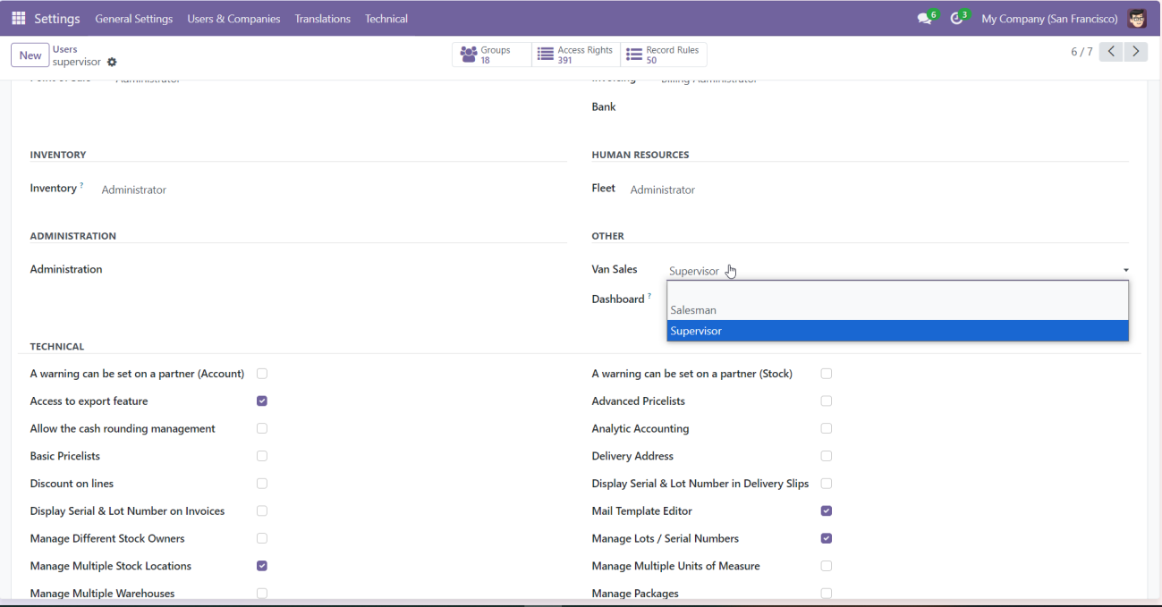 - Open the desired User -> Enable Salesman/Supervisor role -> Save.