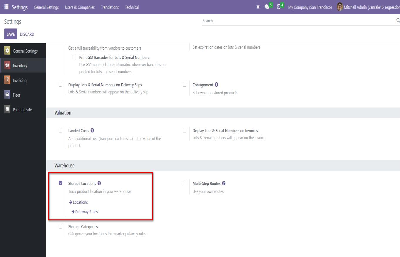 Screenshot 2: Van point of sale - Enable Storage locations:
