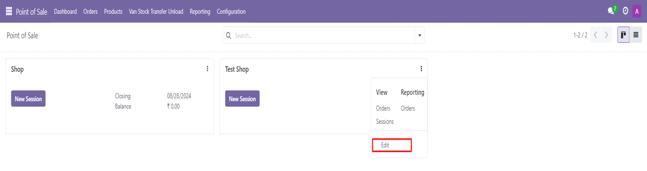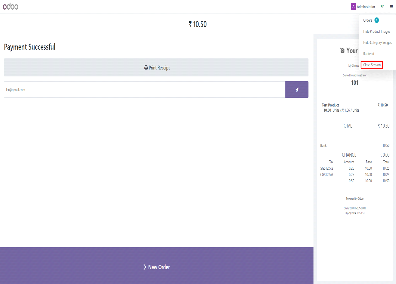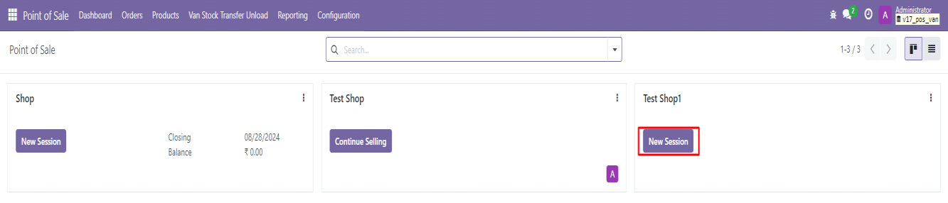 Screenshot 35: When all Loaded Products are Sold, in That case we do not have to create Unload, we can simply close the session. Stock will auto be updated.