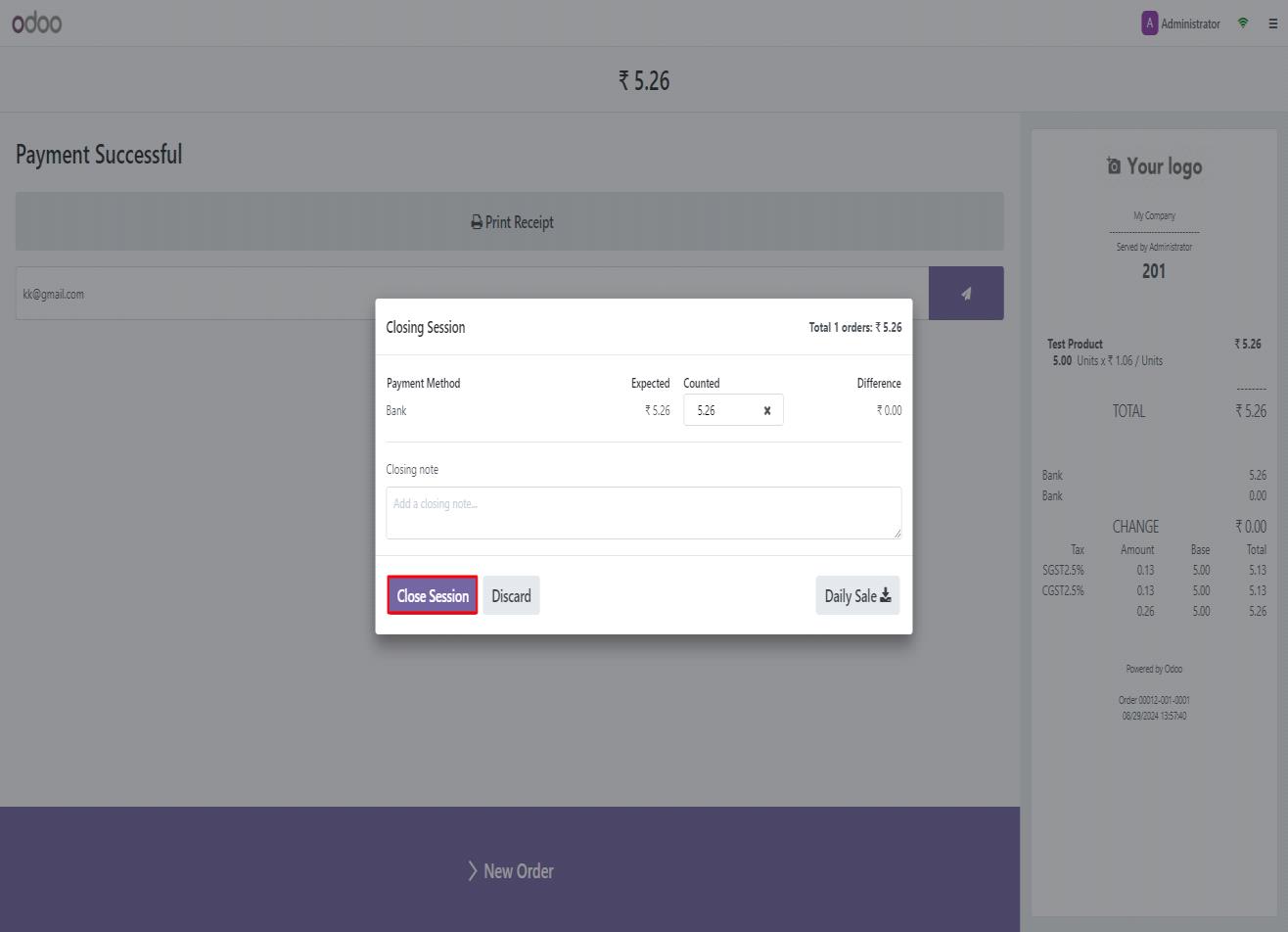 - If the product didn't get sold then we should make an unloading process then only we can close the session.