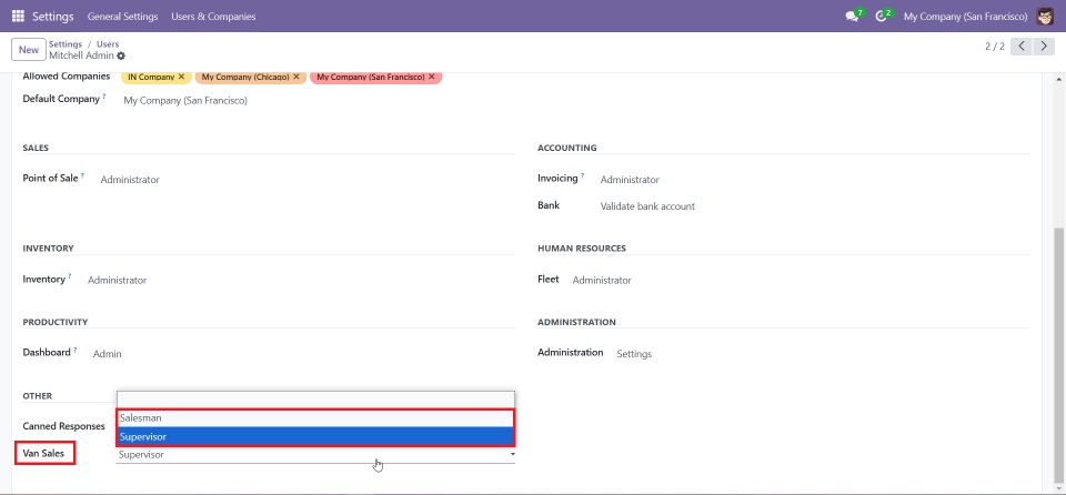 • This step ensures the Supervisor role has appropriate administrative access to manage van sales efficiently.
